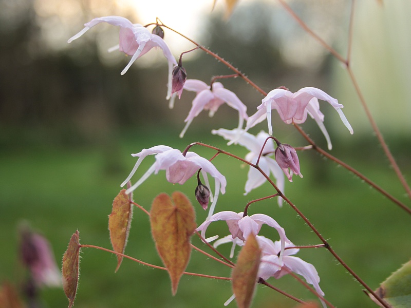 Große rosa Blüten, die eine Kreuzung aus E. grandiflorum und E. leptorrhizum vermuten lassen könnten.Bronzefarbener Austrieb.